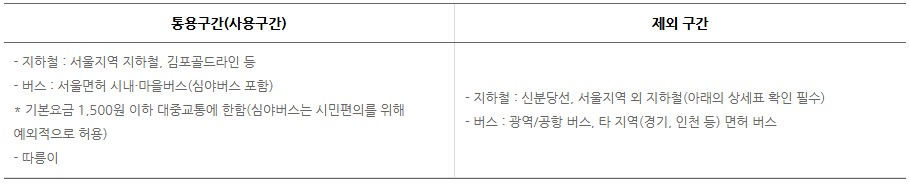 | 30일권 (지하철/버스) | 62,000원 | 55,000원 |