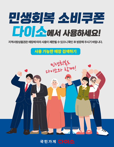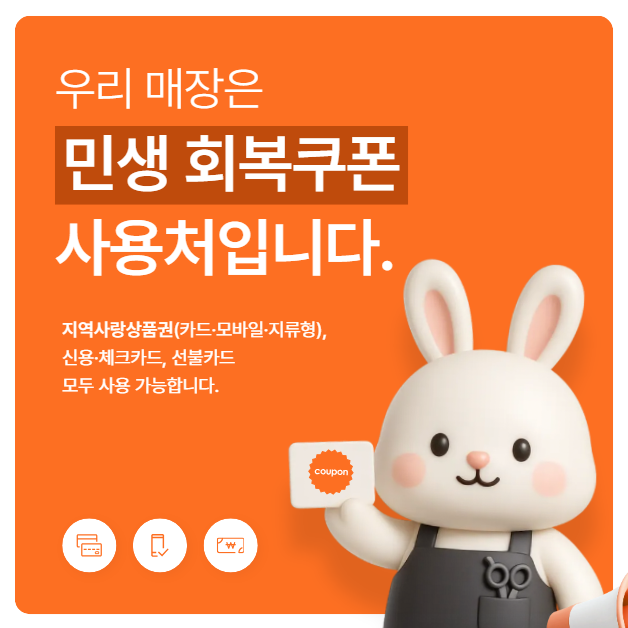 매장 입구에 ‘민생회복 소비쿠폰 사용 가능’ 안내 스티커가 부착되어 있는지 꼭 확인하세요.