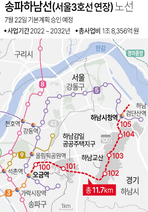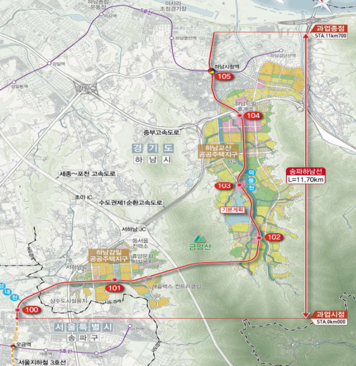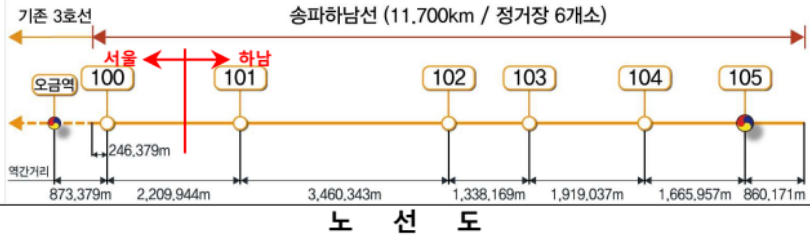 서울 지하철 3호선 연장노선도 사업은 ‘송파하남선’이라는 공식 명칭으로, 기존 3호선 오금역에서 하남시청역(5호선 환승역)까지 총 11.7km를 연장하는 대형 프로젝트입니다.