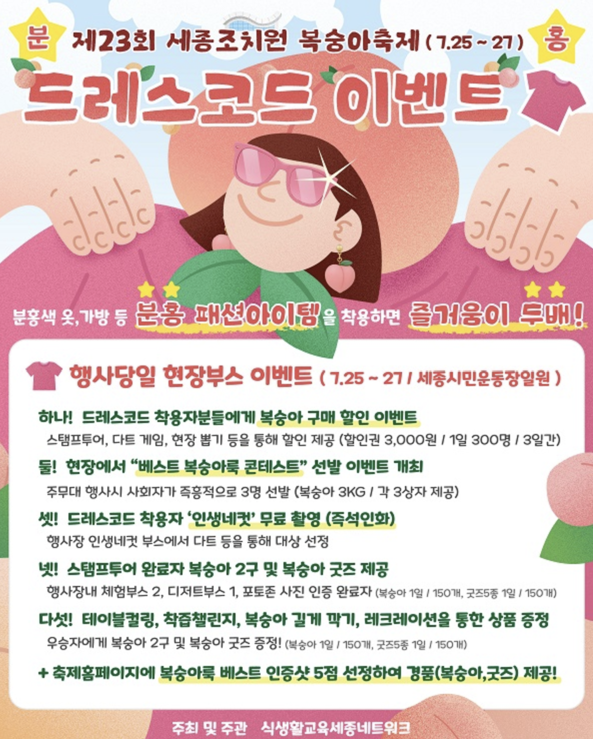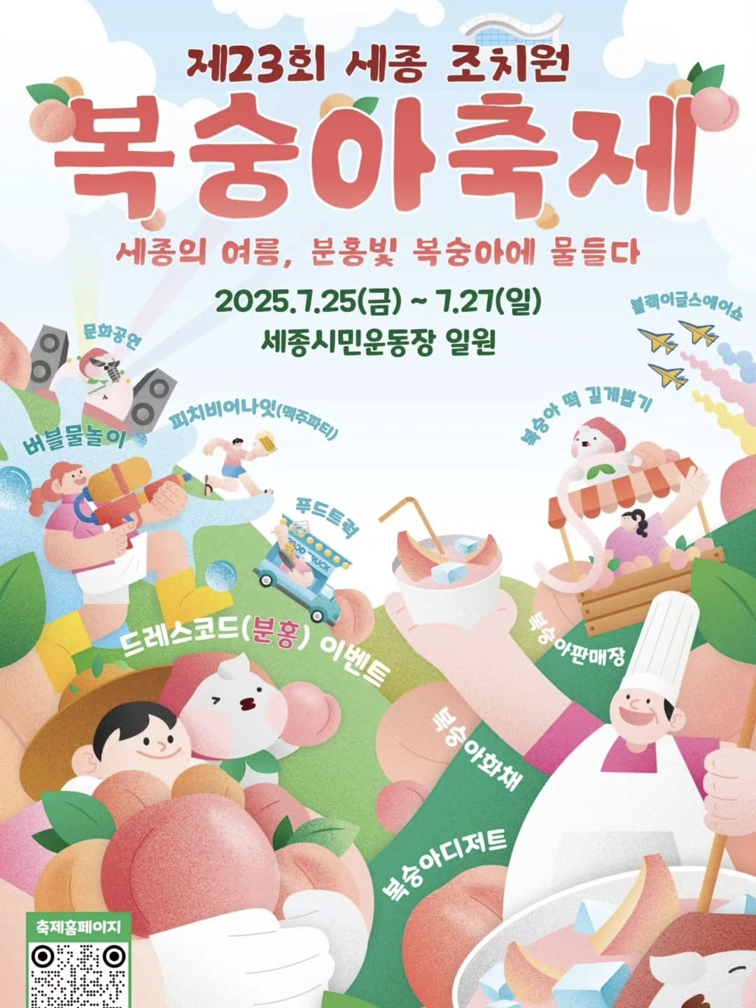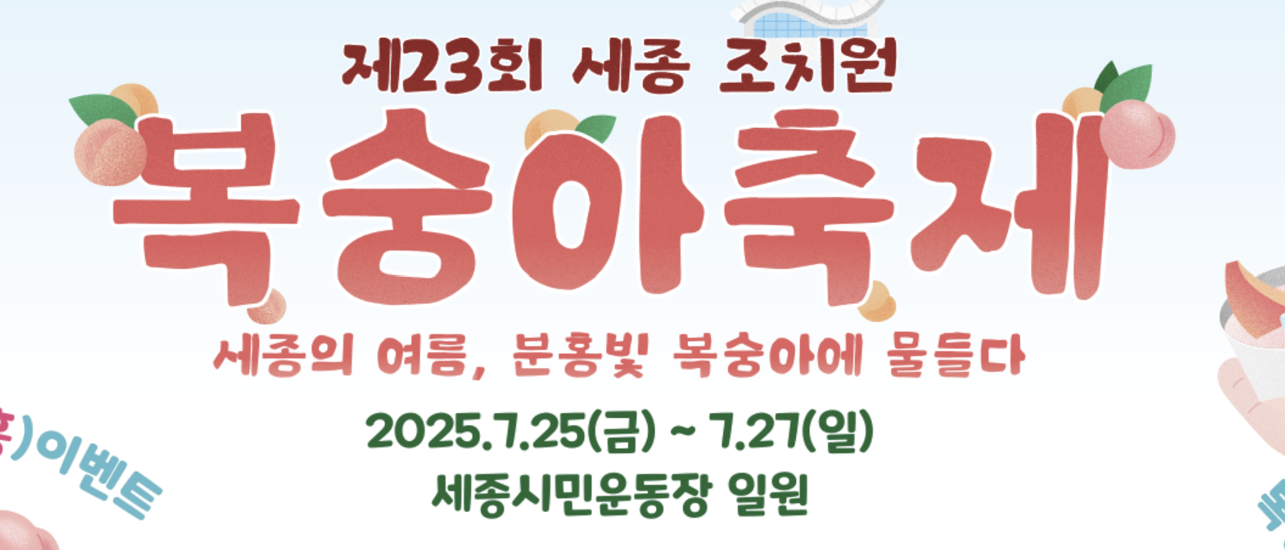 2025년 7월 25일부터 27일까지, 세종특별자치시 조치원읍에 위치한 세종시민운동장 일원에서 ‘제23회 세종 조치원 복숭아 축제’가 개최되었습니다.
