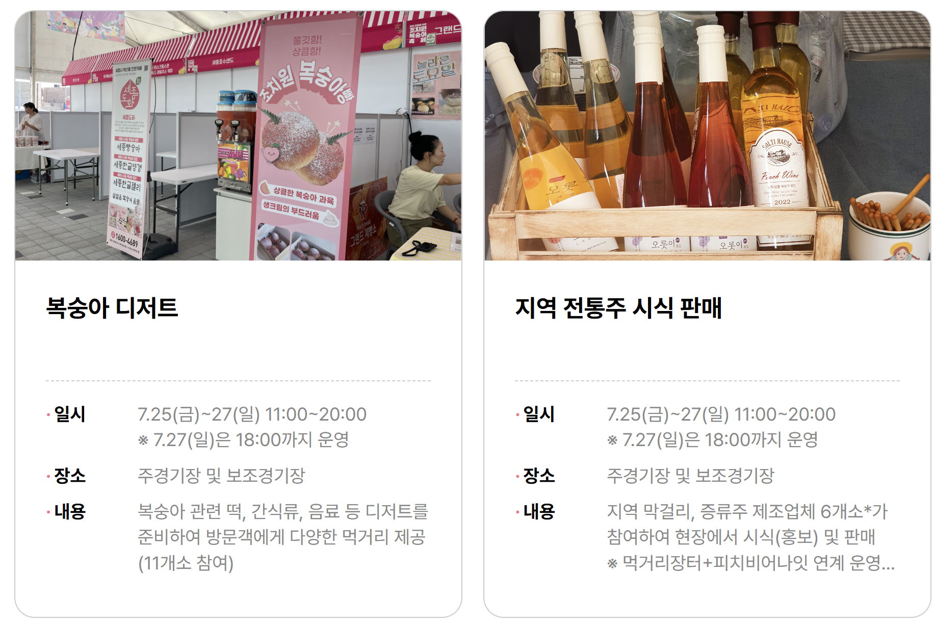 혹시 오늘 이 글을 읽고 “벌써 다 끝났네…” 하고 아쉬움을 느끼셨다면, 걱정 마세요. ‘세종 조치원 복숭아 축제’는 매년 7월 말, 복숭아가 가장 맛있는 시기에 맞춰 열립니다.
