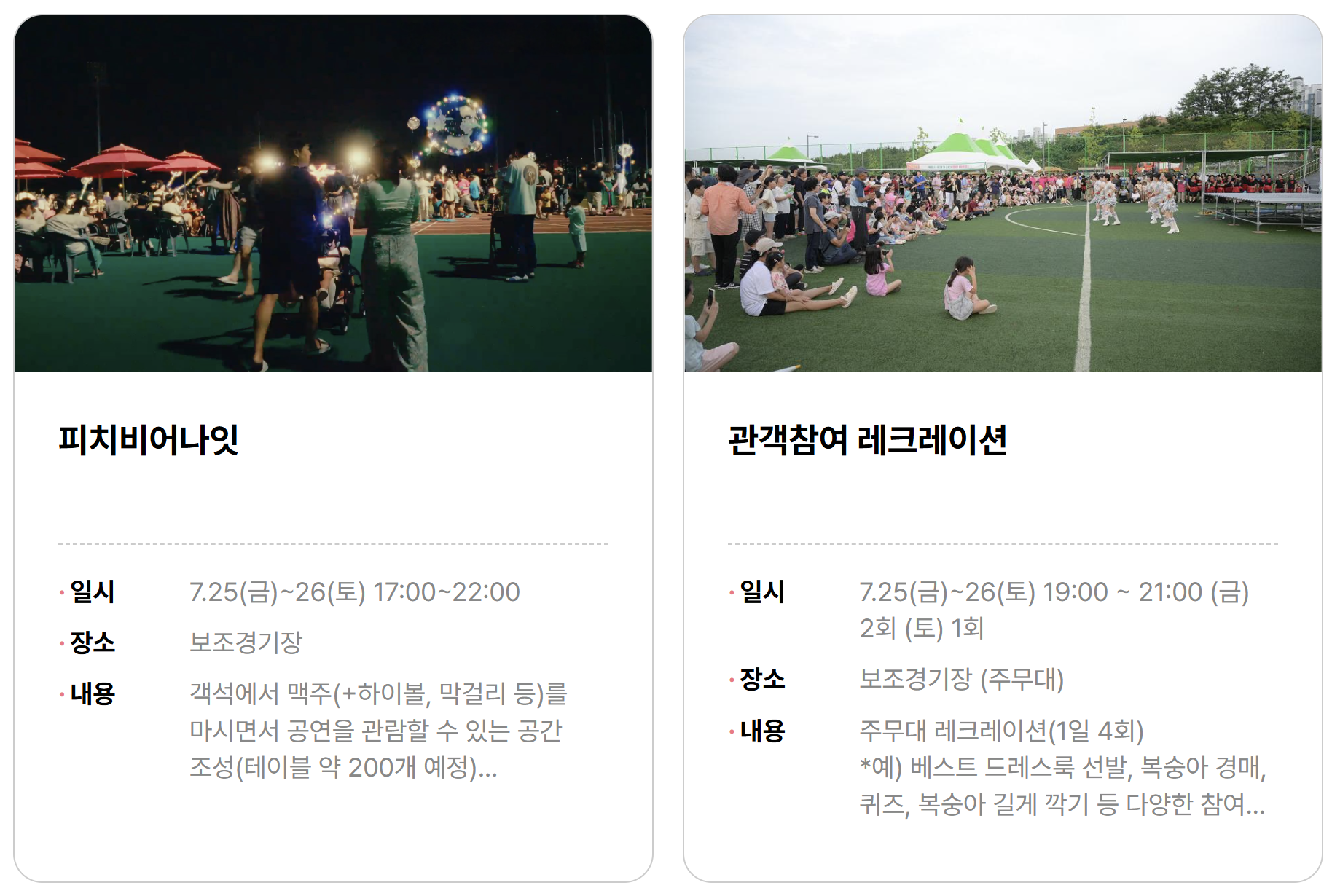맛있는 체험만큼이나 볼거리도 가득했는데요, 특히 올해에는 블랙이글스 에어쇼, 별빛 드론쇼, 모기장 영화제, 지역 예술인의 거리 공연 등이 낮과 밤을 수놓았고, 야간에는 축제의 하이라이트라 할 수 있는 ‘피치 비어 나잇’이 열렸습니다. 복숭아 맥주와 간단한 안주, 라이브 공연이 어우러지는 이 시간은 많은 사람들이 “매년 기다리는 순간”이라고 말할 정도였어요.