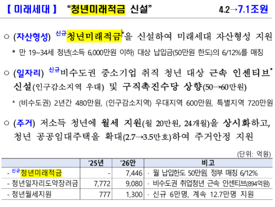 - 세제혜택: 이자 및 지원금에 비과세 또는 감면 혜택이 적용될 전망입니다. 이를 위해서는 공식 발표를 참고하세요.