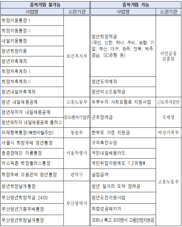 중복 참여 가능 여부에 대한 아래 내용을 참고 바랍니다.
