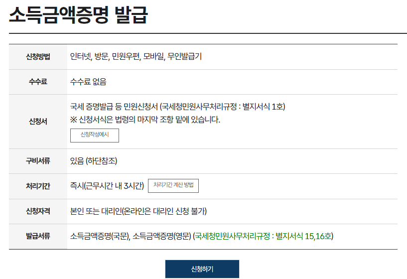 소득금액증명원 (국세청 홈택스 발급 가능)