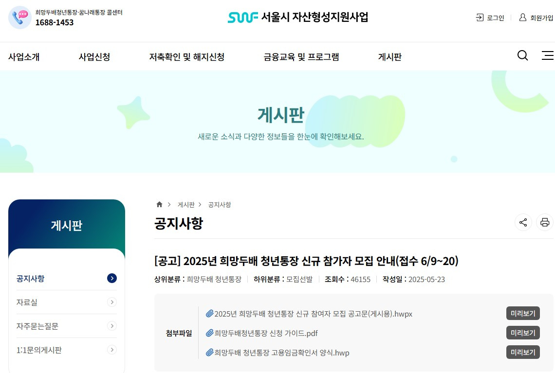 서울시는 2025년에도 청년들의 자산 형성을 적극적으로 지원하기 위해 ‘희망두배 청년통장’ 신규 가입자를 모집합니다.