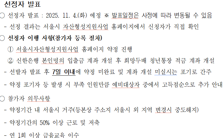 - 신청 방법: 서울시 자산형성지원사업 홈페이지