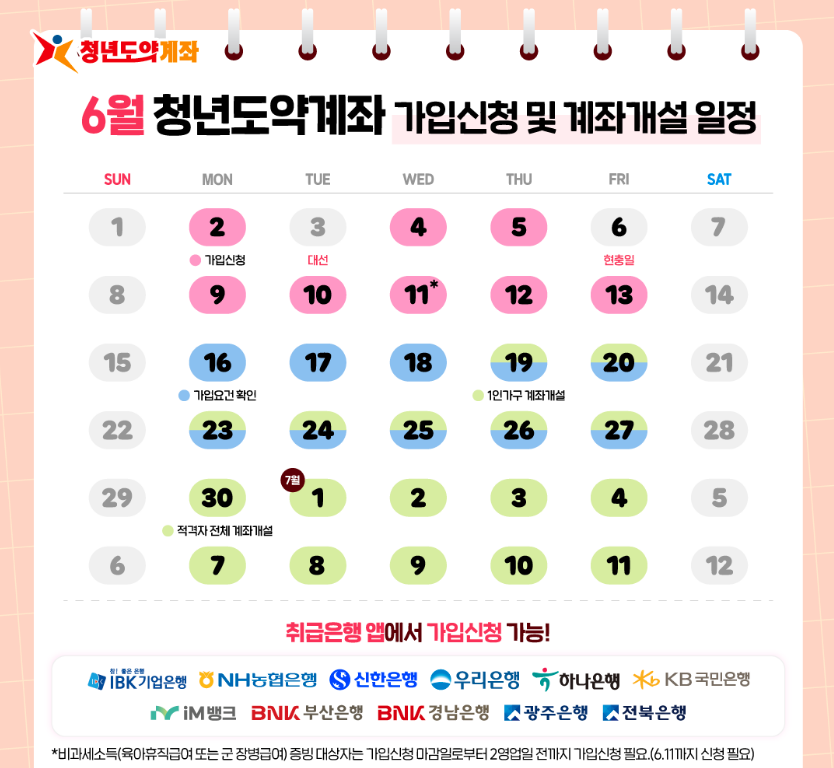 2025년 6월 청년도약계좌의 가입 신청 기간은 6월 2일(월)부터 6월 13일(금)까지입니다.