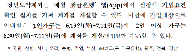 특히, 1인 가구와 2인 이상 가구의 계좌개설 일정이 다르므로 주의가 필요합니다.