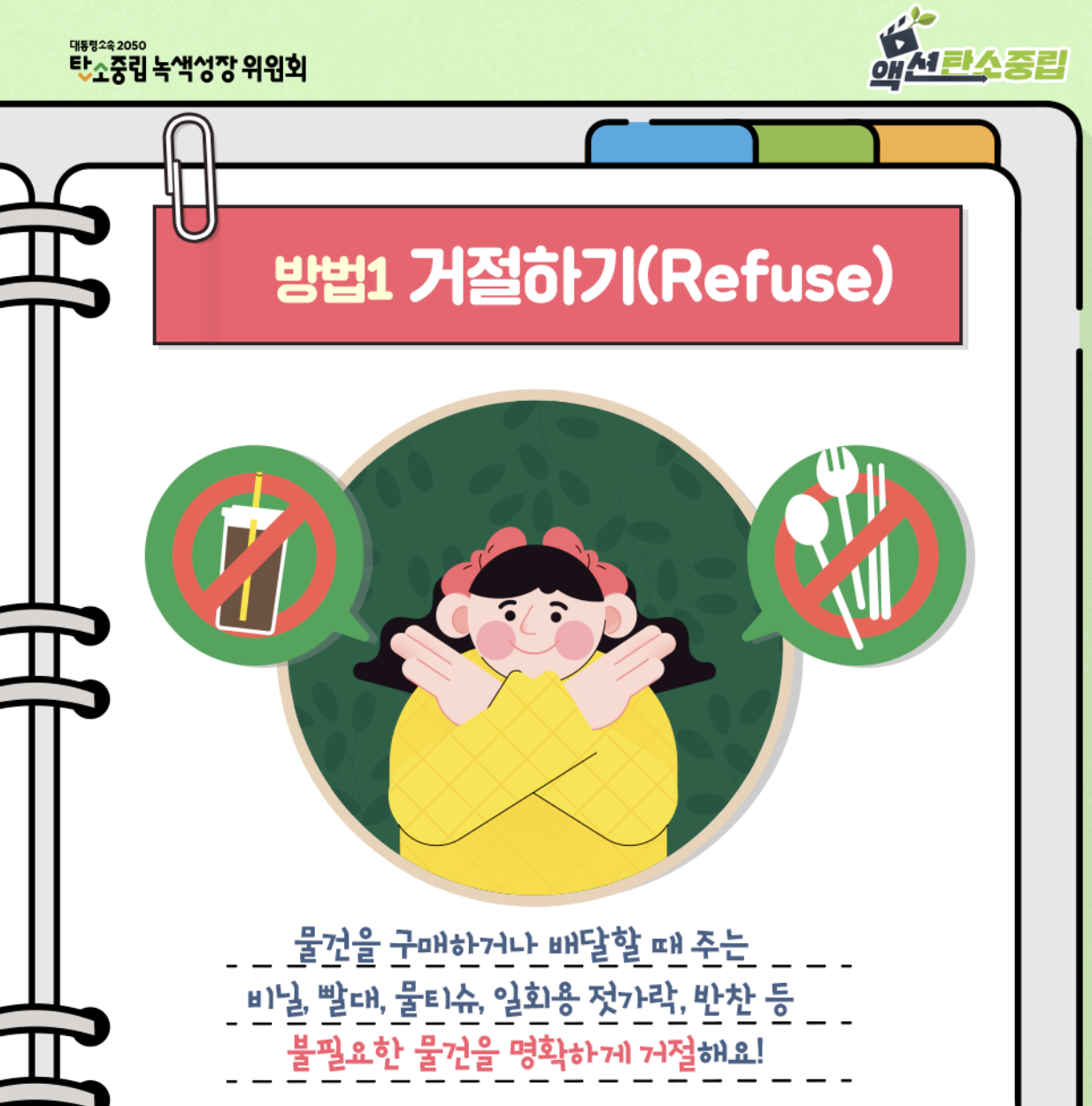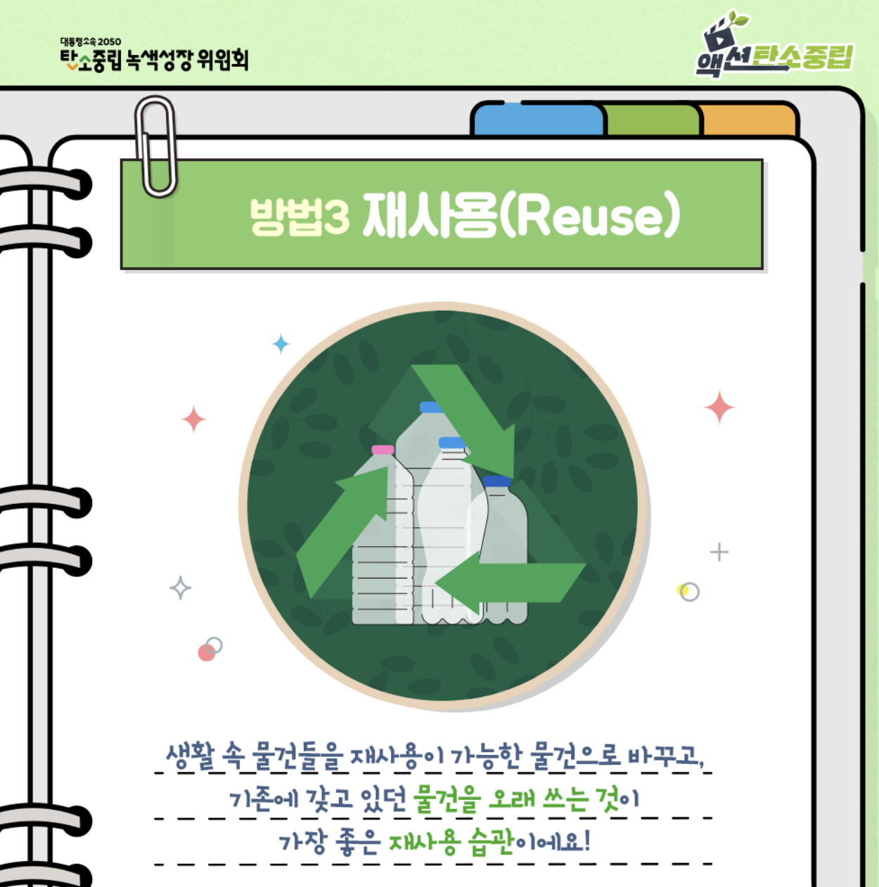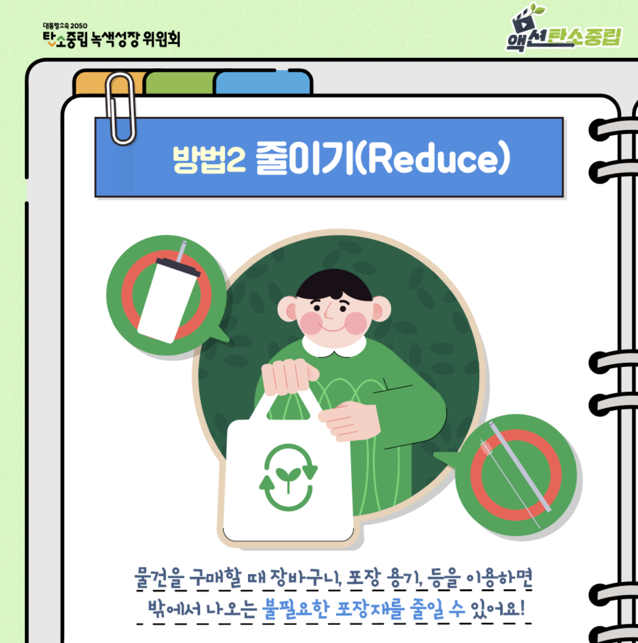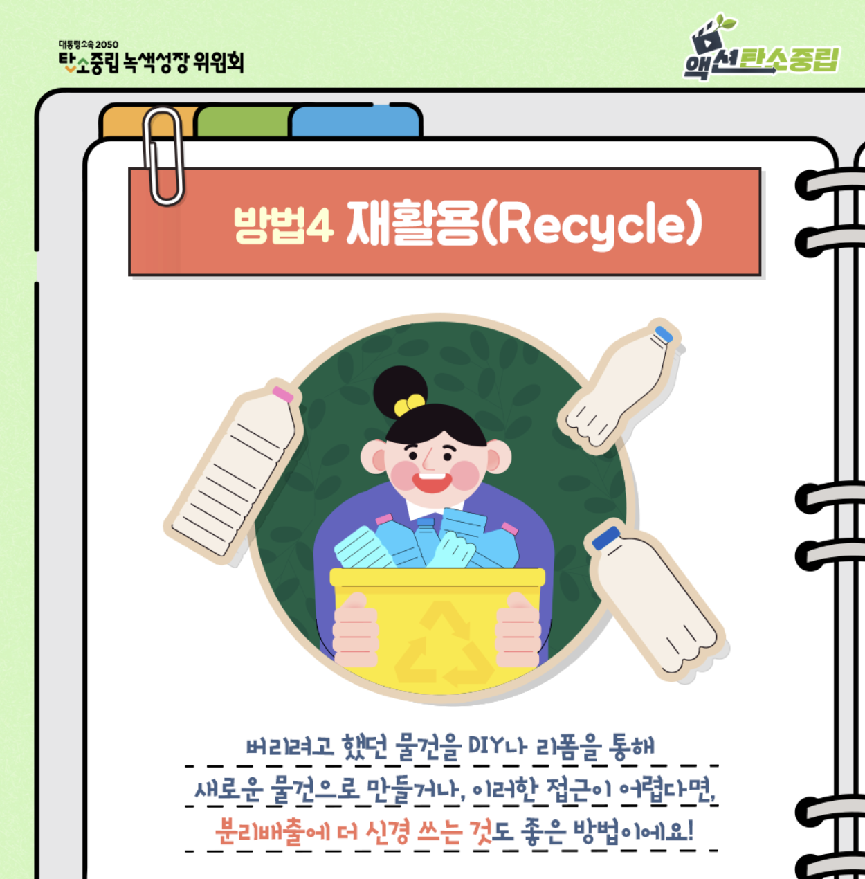 | 일회용품 무심코 사용 | 다회용기, 텀블러 사용 |