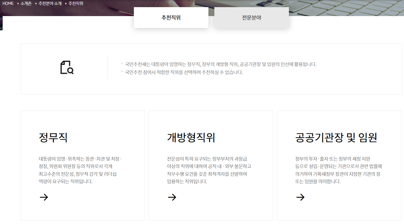 | 추천 방법 | 1. 인사혁신처 홈페이지 온라인 접수 2. 이메일 접수: openchoice@korea.kr |
