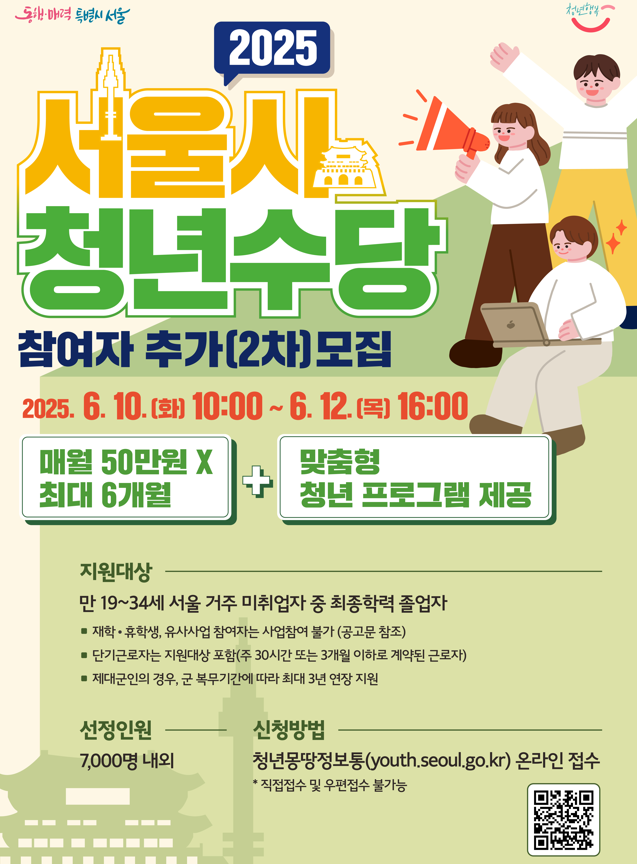 라는 마음으로, 이번 2025년 6월 서울시 청년수당 추가 모집 신청을 모든 청년 여러분께 적극 추천드려요.